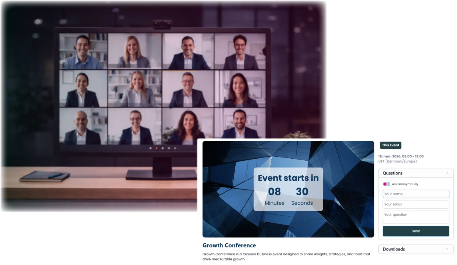- Engage attendees with live Q&A, polls, and chat